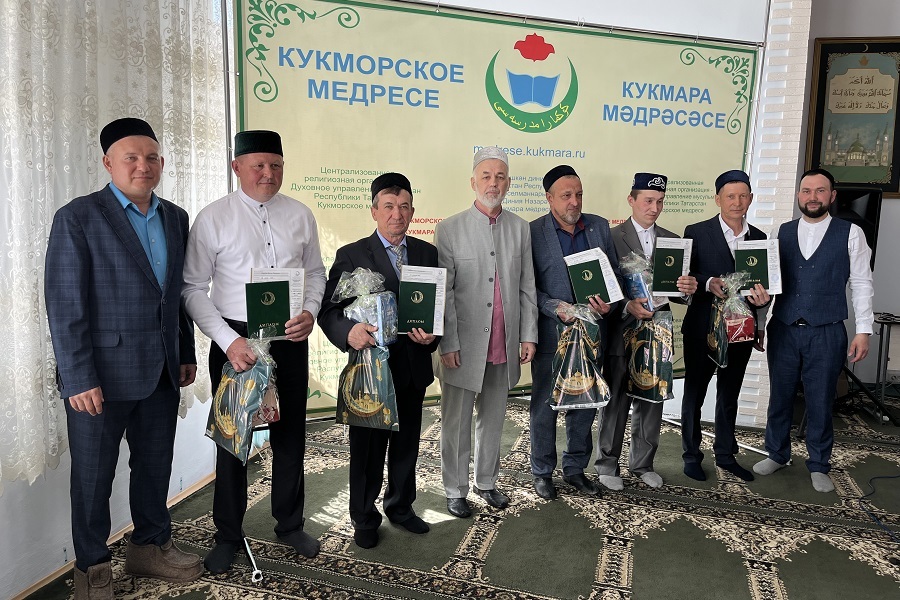 В Кукморском медресе состоялось торжественное мероприятие, посвященное нынешнему выпуску. Профессиональное отделение, готовящее имам-хатыйбов и преподавателей основ ислама, в этом году окончили 30 человек: 22 мужчин и 8 женщин. Им были вручены дипломы о среднем профессиональном религиозном образовании. Примечательно то, что большинство выпускников профессионального отделения уже трудятся по избранной специальности в религиозной сфере. Среди них 10 имамов, есть также и те, кто выполняет обязанности муэдзина и абыстай, а также работают преподавателями примечетских курсов.